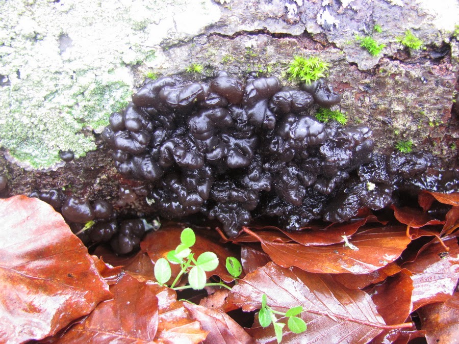 Así como la Exidia glandulosa, un hongo gelatinoso que recubre y descompone las cortezas de las hayas muertas.
